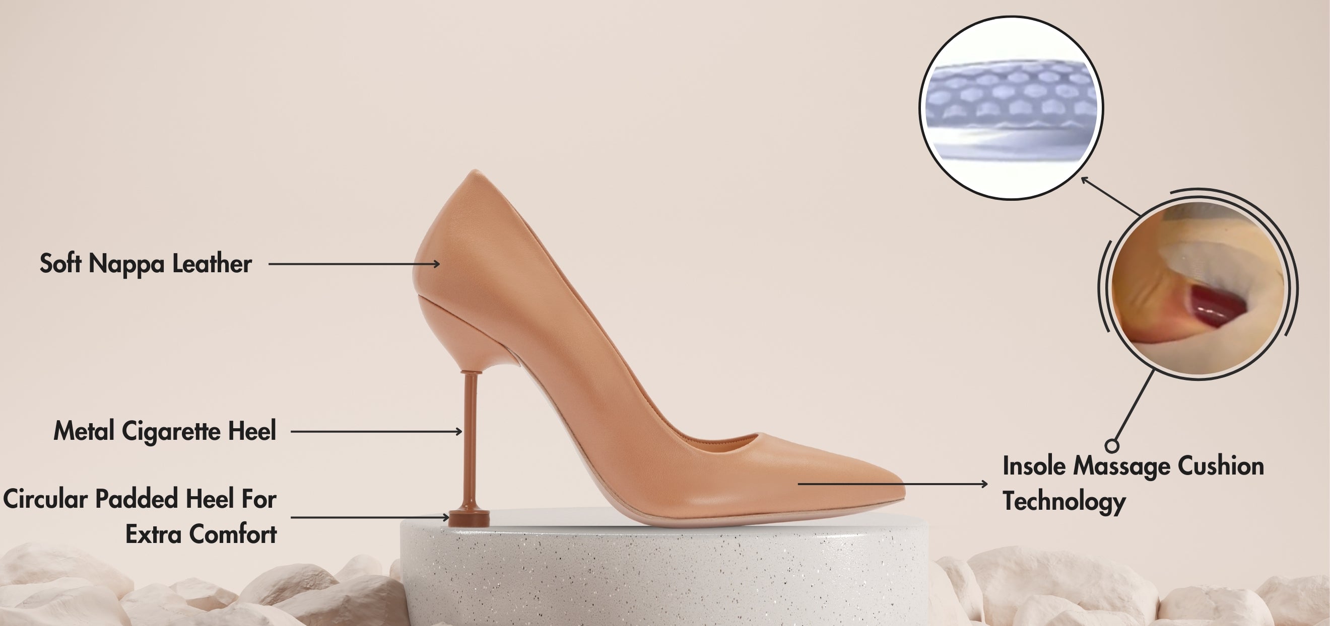Watch as we reveal the innovative cushion technology in our stylish and comfortable heels, offering unmatched comfort and support with every step.