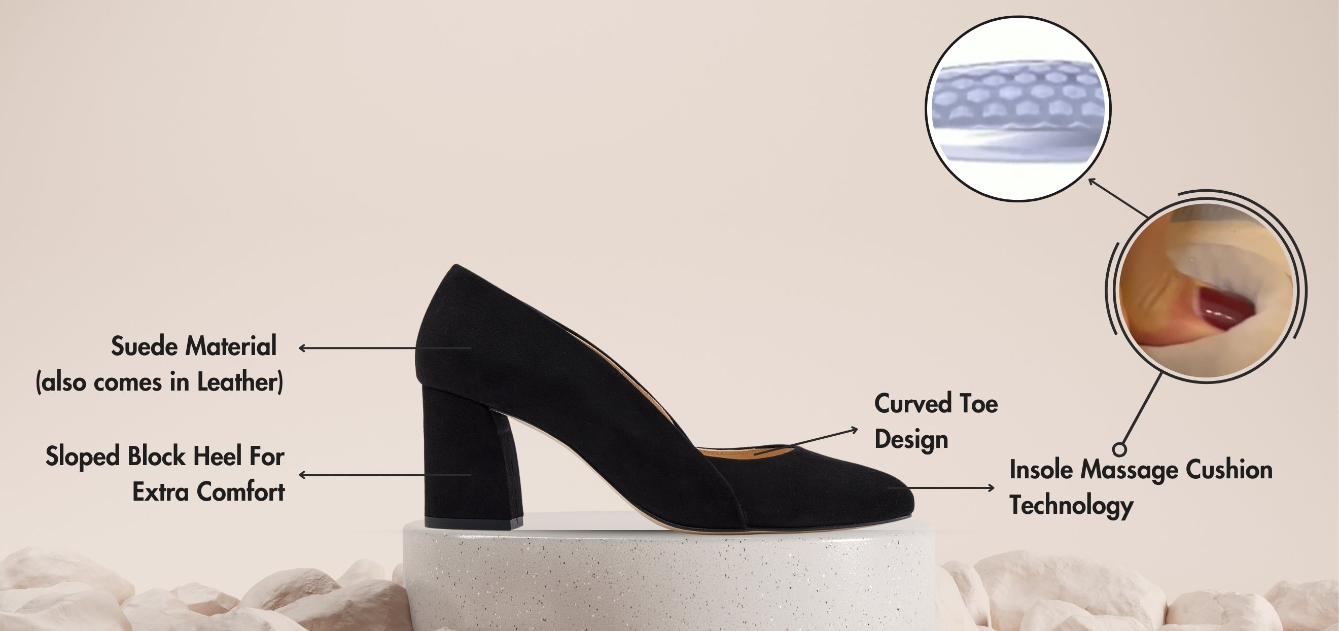 Watch as we reveal the innovative cushion technology in our stylish and comfortable heels, offering unmatched comfort and support with every step.